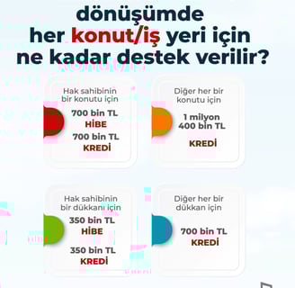 Kentsel dönüşüm sürecine katılmayı düşünen vatandaşlar için devlet, hem bireysel hem de alan bazlı dönüşüm projelerinde önemli teşvikler sunuyor. "Yarısı Bizden" kampanyası kapsamında verilen hibe ve uygun faizli kredi imkanları, süreci çok daha kolay ve erişilebilir hale getiriyor.